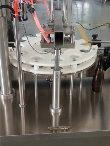 1,全自動液體灌裝壓塞鎖蓋一體機采用圓盤式理瓶,自動進瓶;