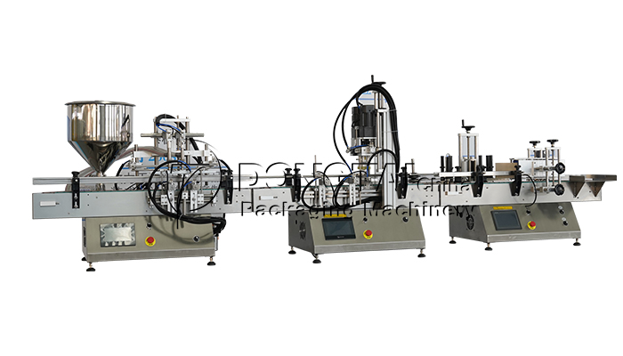 該生產(chǎn)線適用于小規(guī)模生產(chǎn),可自動(dòng)灌裝液體,瓶蓋和標(biāo)簽貼紙。這些臺(tái)式機(jī)可節(jié)省工作空間,極大地提高您的工作效率。廣泛用于食品,飲料,化妝品,日用化工制藥行業(yè)。我們可以根據(jù)您的填充材料,瓶蓋定制機(jī)器,確保這些機(jī)器可以更好地與您的產(chǎn)品配合使用。我們還可以將輸送機(jī)定制為L配置,以幫助您節(jié)省工作空間。