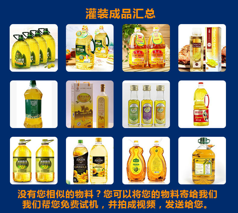 并且食用油灌裝機采用316L不銹鋼精制防滴漏灌裝頭,通過性好,內外精拋,是真正的食品級,食用油灌裝機的獨特灌裝頭設計及真空回吸系統,確保灌裝過程無殘油滴漏,快慢雙速灌裝,灌裝速度可調,杜絕溢瓶現象。該機采用動力灌裝,無需配裝高位罐,簡化了安裝工序,提高了灌裝效率。履帶式壓蓋機,穩定無噪音,無空壓現象。觸摸屏界面友好,操作簡捷,SIEMENS PLC控制系統,運算速度快,性能穩定,品質卓越。電、氣件均采用精品元件,所以確保了整機運作穩定,故障率低,讓您安心的使用食用油灌裝機,實現快速生產。